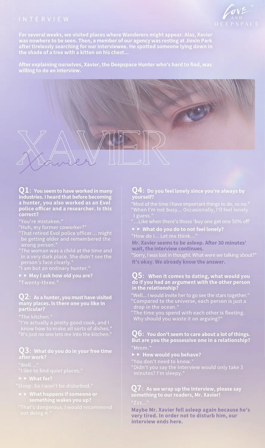 Xavier’s age is revealed in the following interview posted on the official Love and Deepspace social account.