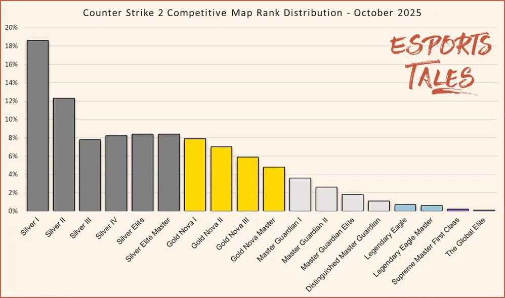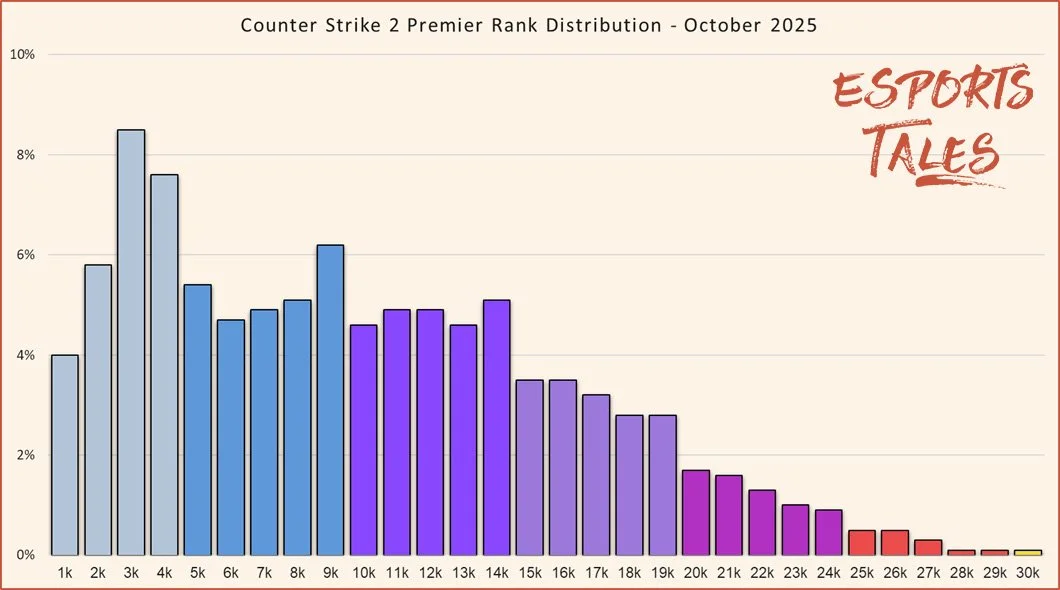 CS2 Rank Distribution in October 2025: Premier, Competitive, and CS:GO comparison